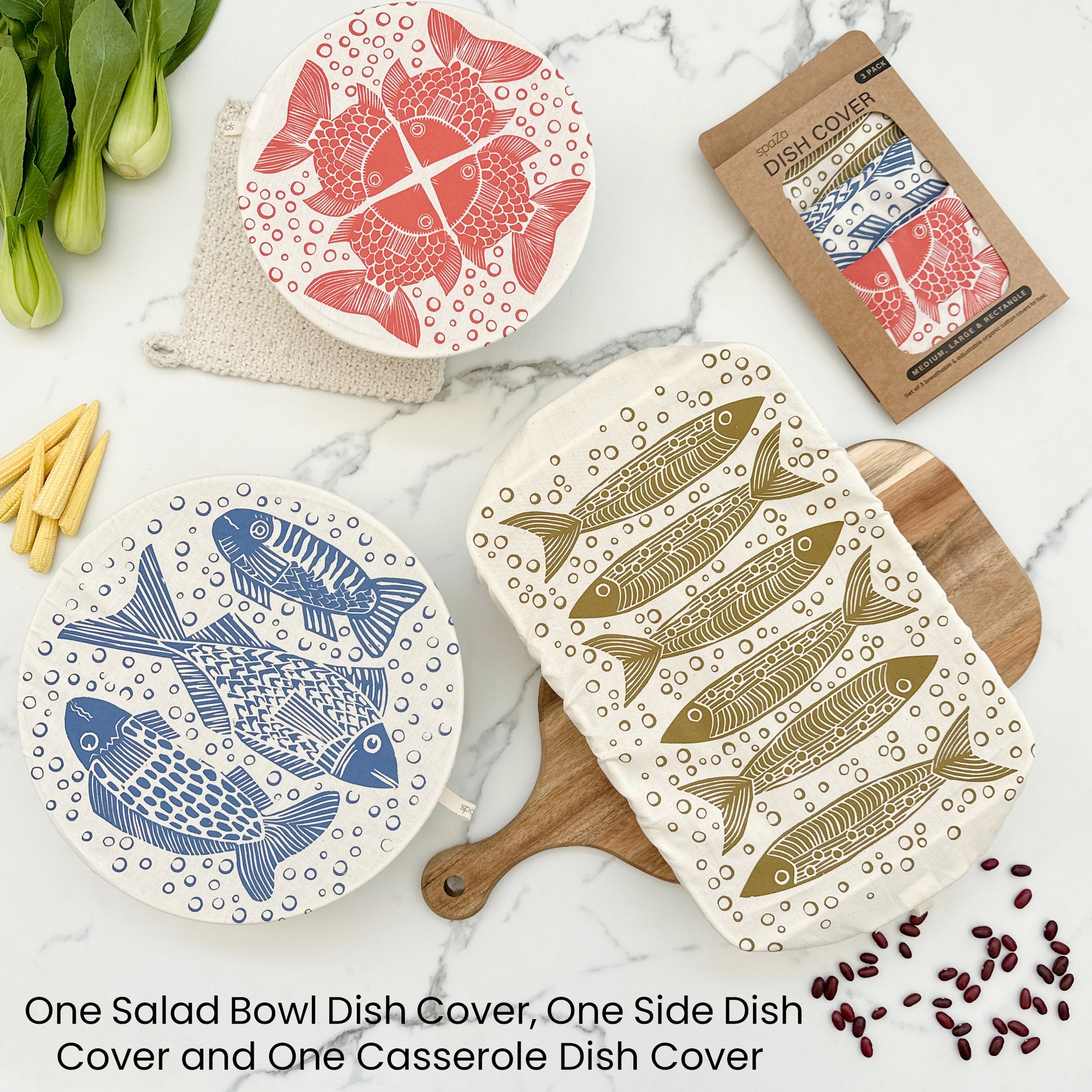 Dish Cover Set of 3 with rectangle and 2 rounds | Fish Print