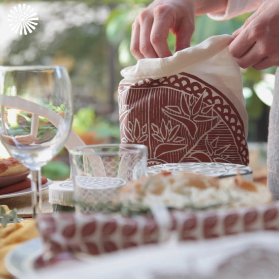 Our products are made with organic cotton and biodegradable materials. Our Dish covers are tested to be food-safe and microwave-safe, featuring specially formulated elastic for a secure, lasting fit.
